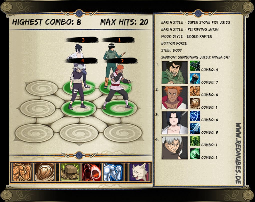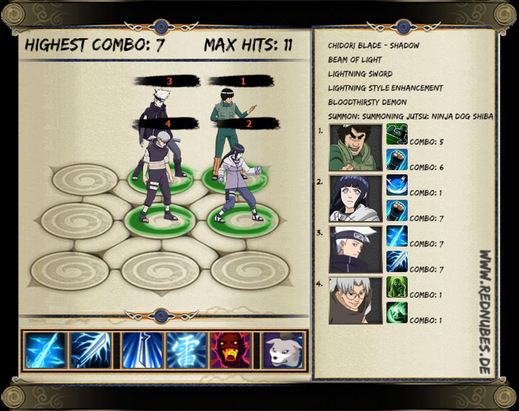 ทั้งหมดนี้ก็เป็นเพียงการจัดทีมเบื้องต้นที่เหมาะสำหรับผู้เล่นที่ยังมีตัวไม่เยอะนะครับ ซึ่งในภายหลังสามารถปรับเปลี่ยนได้ตามความเหมาะสม และสุดท้ายนี้ก็อย่าลืมกันว่าบัฟที่เพิ่มความเสียหายของอาจารณ์ไกนั้นอยู่ได้เพียง 3 เทิร์นเท่านั้น แนะนำให้กำจัดศัตรูที่เป็นแกนหลักของฝั่งตรงข้ามได้ได้เร็วที่สุดก่อนในช่วงนี้ และบัฟนั้นก็ยังสามารถใช้ร่วมกับบัฟของนินจาอื่นๆได้ด้วย