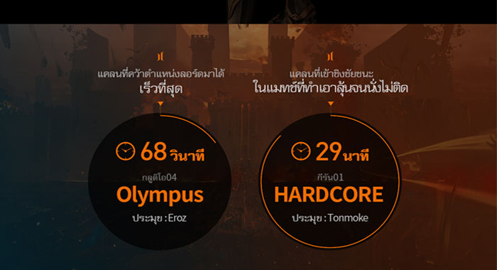 อาเดนาทั้งหมดที่แคลนต่างๆ ได้ทำการประมูลราคาเพื่อเข้าร่วมศึก มีมูลค่าสูงถึง 6.5 พันล้าน มีแคลนที่ประมูลราคาสูงสุดอยู่ที่15 ล้านอาเดนา และแคลนที่สามารถจบศึกได้รวดเร็วที่สุด ซึ่งสามารถโค่นฝ่ายตรงข้ามได้นั้นใช้เวลาเพียง68 วินาที ได้แก่ แคลน Olympus ส่วน 1 ในแมทช์ที่สูสีที่สุดเกิดขึ้นที่ป้อมปราการฝ่ายป้องกันชั่วคราวในเซิร์ฟเวอร์กีรัน01 [2011] เป็นแมทช์ที่ทั้งดุเดือดและผลัดกันรุกผลัดกันรับ แต่สุดท้าย แคลน HARDCOREก็พลิกมาเป็นฝ่ายชนะ โดยลอร์ดคนแรก Tonmoke นั้นเป็นฝ่ายสลักสิ่งศักดิ์สิทธิ์สำเร็จเสียก่อนใช้เวลารวมทั้งสิ้น 29 นาที 48 วินาที นอกจากนี้ยังมีแคลนอีกกว่า 22 แคลนที่ใช้เวลารวมจนเต็มลิมิต 30 นาทีเต็มในการทำศึก และจบลงด้วยการเสมอกัน