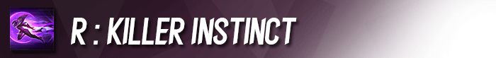 : Kai'Sa ชาร์จพลัง เธอจะมีความเร็วเคลื่อนที่เพิ่มขึ้นในระยะหนึ่งแต่ไม่สามารถโจมตีได้ หลังจากการชาร์จพลังเสร็จสิ้น เธอจะได้รับความเร็วโจมตีเพิ่มขึ้นชั่วขณะ (การโจมตีปกติของ Kai'Sa จะลดคูลดาวน์ของสกิลนี้)