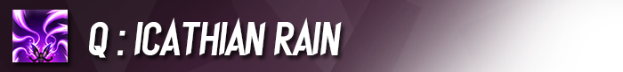 : Kai'Sa ปล่อยมิสไซล์ใส่ศัตรูใกล้เคียง หากโดนศัตรูเดิม ความเสียหายจะลดลงเล็กน้อย