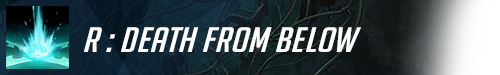 Pyke สร้างพื้นที่เป็นรูปตัว X พุ่งเข้าใส่แชมเปี้ยนฝั่งตรงข้ามพร้อมทำการฆ่าแชมเปี้ยนที่มีพลังชีวิตต่ำกว่าที่กำหนด แชมเปี้ยนตัวอื่นๆที่อยู่ในพื้นที่ X แต่ไม่ได้โดนฆ่าจะได้รับความเสียหายเท่ากับแชมเปี้ยนตัวแรกที่โดนฆ่า