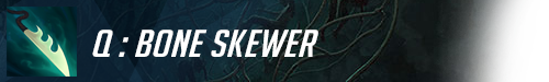 กดค้าง : Pyke จะง้างฉมวกของเขาและปาเข้าใส่เป้าหมายแรกที่โดน พร้อมดึงเป้าหมายนั้นเข้าหาตัว