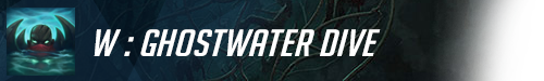 Pyke ดำดิ่งลงสู้ผืนน้ำแห่งปีศาจ พลางตัวและเพิ่มความเร็วเคลื่อนที่ระยะหนึ่งและค่อยๆ ลดลงเรื่อยๆ แชมเปี้ยนฝั่งตรงข้ามที่อยู่นอกระยะสกิลของ Pyke จะไม่สามารถเห็นเขาได้ และหากเขาทำการโจมตีหรือใช้สกิล การพลางตัวของเขาจะยุติลง