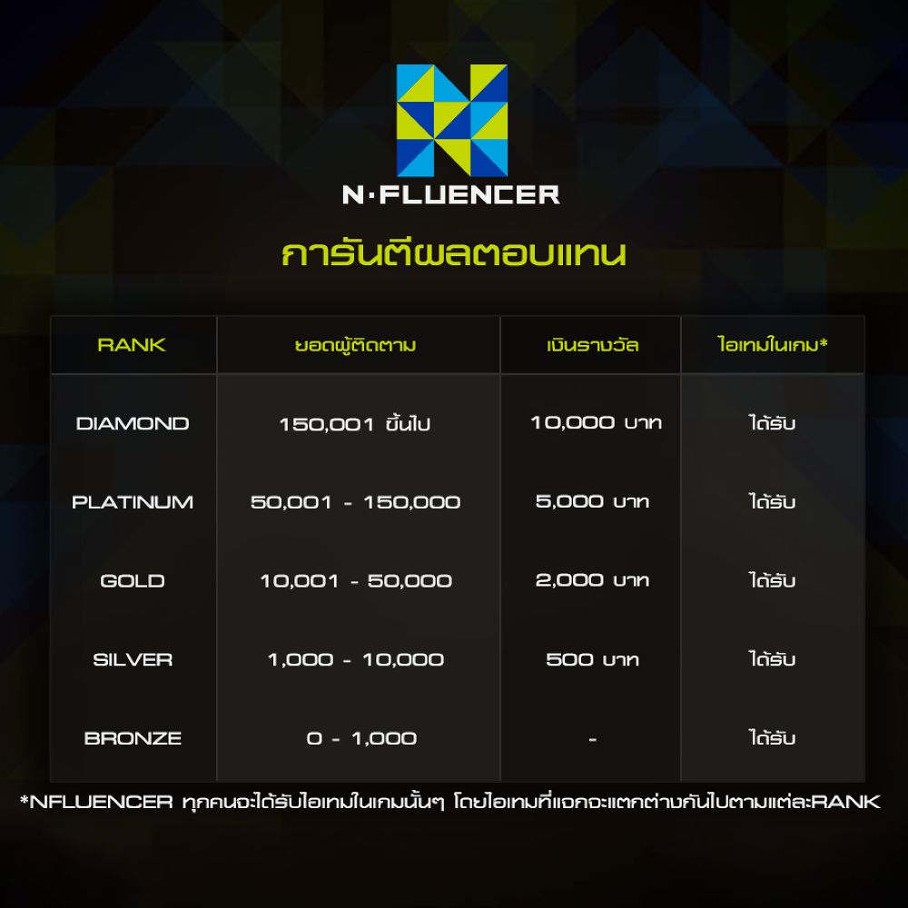 ผู้ที่ได้รับเลือกเป็น NFluencer การันตีผลตอบแทนสุดพิเศษพร้อมไอเทมในเกมไปเลย!