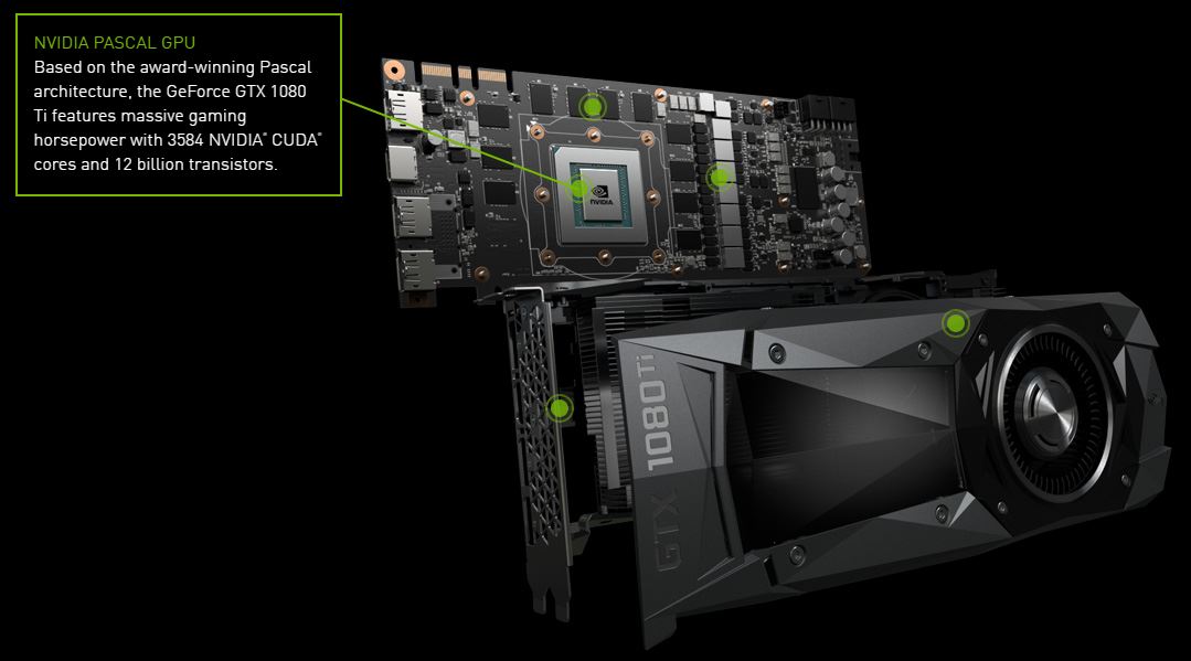 สิ่งที่แตกต่างของ 1080Ti กับ 1080 ตัวเดิมนั่นคือ 1080Ti จะมาพร้อมกับ CUDA core 3,584 ชุดทำงานได้เท่ากับ TITAN X ความเร็ว 1.6GHz แถมยังโม้อีกว่าสามารถ OC( Over clock) ได้ถึง 2.0 GHz เลยด้วยซ้ำ จับคู่กับแรม GDDR5X แบบ 352 bit 11 GB และยังใช้เทคโนโลยีในการจัดการแรมบนการ์ดจอแบบใหม่ กินไฟ 220W โดยใช้ สายต่อแบบ 6 และ 8 Pin จาก Power Supply อย่างละหัวส่วนเรื่องการระบายความร้อนนั้นใช้แผ่นระบายความร้อนหลัง PCB เคลมว่าเย็นกว่า GTX 1080 ตัวเดิม 5 องศา(ใครจะเอานิ้วไปแตะก็เชิญ) แถมเงียบกว่าเก่าอีกด้วย นอกจากนี้ทางค่ายเขียวเค้าออกตัวมาว่าเจ้า GTX 1080Ti นี้จะแรงกว่าตัว GTX 1080 ถึง 35% ส่วนราคาเปิดตัวถือว่าเอาเรื่องอยู่เพราะทาง Nvidia เคาะราคาเจ้า1080Ti อยู่ที่ 699US หรือประมาณ 25,500 บาท โดยจะเริ่มวางจำหน่ายในช่วงต้นเดือนมีนาคมนี้ และข่าวดีมากๆ อีกอย่างหนึ่งคือตอนนี้ทาง Nvidia ได้ประกาศปรับลดราคา การ์ดจอ GTX 1080 เหลือ 499US หรือประมาณ 17,000 บาท ซึ่งตอนนี้ราคาทางเมืองนอกก็เริ่มลดกันแล้ว สาวกค่ายเขียวในบ้านเราที่รออยู่ก็คงต้องรอสักนิดครับ