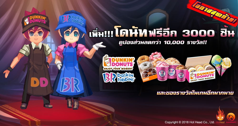 ที่เว็บไซต์ OSS.in.th โดยทำตามขั้นตอนง่ายๆ ก็จะได้รับ Redeem Code สำหรับใช้กรอกรับคูปองโดนัทฟรีและสิทธิอื่น ๆ เพื่อนำไปใช้แลกที่ร้าน Dunkin Donuts และ Baskin Robbins ในวันเปิดเกมเป็นต้นไป