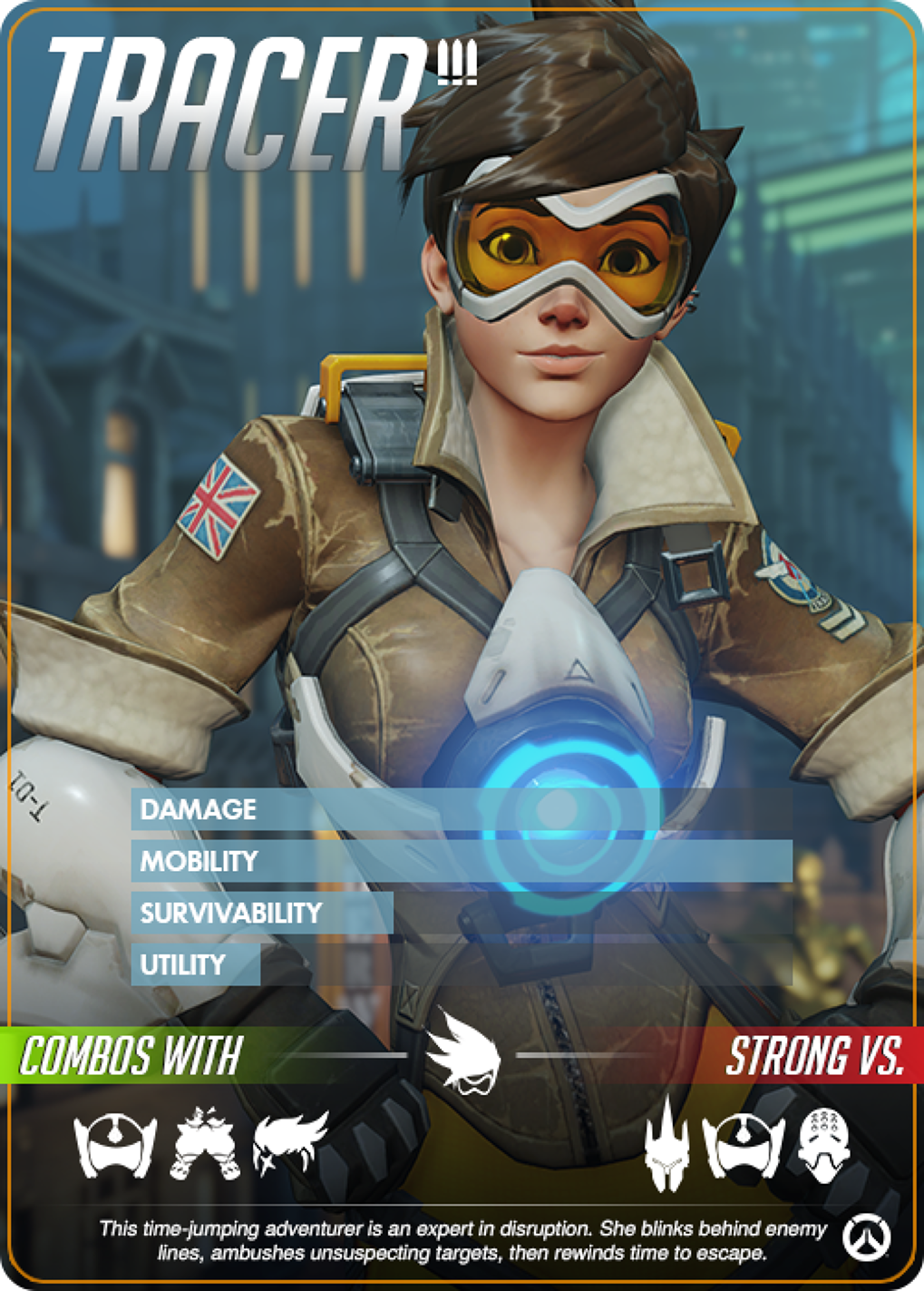 การต่อสู้กับเค้ามีหลายวิธี โดยวิธีที่ง่ายที่สุดคือการเล่นตัวที่เกนจิไม่สามารถใช้ดาบปัดกระสุนได้อย่าง Winston และ Mei เป็นต้นหรือตัวละครอย่าง Mccree เองก็สามารถจัดการเค้าได้ง่ายๆ เพียงปาระเบิดให้เกนจิติดสตั้นและระดมยิงให้ตายๆไปซะ ส่วนอันติของ Genji ถึงแม้ว่าจะน่ากลัวก็จริง แต่ถ้าหากเราไม่เผลอให้เค้าเข้ามาได้ง่ายๆ ก็เป็นการยากที่จะไล่ฆ่าเราไปทีละคน เพราะเราสามารถที่จะรุมเค้าให้ตายได้ง่ายๆ เพราะ Genji ตัวบางมาก(แต่ต้องระวัง Deflect ให้ดีนะ)Tracer เป็นตัวลครที่สามารถไปไหนมาไหนได้อย่างรวดเร็ว ด้วยการ ฺBlink ไปมา ซึ่งเหตุนี้เองทำให้เธอเป็นตัวละครที่น่ารำคาญมากสำหรับฝั่งตรงข้ามที่ต้องพบเจอ เพราะการจะฆ่าเธอให้ตายนั้นเป็นอะไรที่ทำได้ยากจาการที่เธอหลบไปมา และยังมีสกิลเอาตัวรอดอย่าง Recall ที่ย้อนเวลาและตำแหน่งที่อยู่กลับไปในระยะเวลาหนึ่ง ทำให้เธอแทบจะเป็นอมตะเลยทีเดียวหากไม่โดนการโจมตีหนักๆและตายซะก่อน สิ่งที่เราต้องไม่ลืมคือตัวของ Tracer ไม่ใช่ตัวละครที่ทำดาเมจอย่างหนักหน่วงในชุดเดียว แต่เธอมีความสามารถในการตอดและก่อกวนศัตรูได้ดีมาก เราสามารถที่จะให้เธอทำหน้าที่สเกาท์และสอดแนมฝั่งตรงข้ามได้ด้วยการใช้ Blink ไปดูรอบๆ แล้วย้อนกลับมาโดย Recall ก็ได้เช่นกัน ส่วนเป้าหมายหลักของ Tracer นั้นส่วนมากจะเป็นสไนเปอร์ที่มักจะหลบอยู่ในแผงหลัง ซึ่งเธอส่ามารถเก็บได้ไม่ยาก(ถ้ายิงโดน) หรือก่อกวนเหล่าแท้งให้สนใจเธอละไม่มีสมาธิในการยึด Objective และแน่นอนว่ามันจะเป็นการดีมากหากเราสามารถจดจำจุดเกิดของไอเทมฟื้่นฟูเลือดได้ เพราะด้วยความว่องไวของเธอทำให้เราสามารถไปเก็บได้ก่อนใครๆ เทคนิคการใช้ท่าไม้ตายของ Tracer ท่าไม้ตายของเธออาจจะไม่ได้อลังการงานสร้างแบบตัวละคร Offense คนอื่น แต่จากความว่องไวของเธอทำให้ตัวเธอเองสามารถเจาะทะลวงไปแผงหลังของศัตรูและติดระเบิดอันเป็นไม้ตายไปยังเป้าหมายได้ง่ายๆ โดยเฉพาะแผงหลังอย่าง Bastion ที่พอรู้ตัวอีกทีก็โดนติดระเบิดไปเรียบร้อยแล้ว! แถมเธอยังหนีออกมาได้ง่ายๆด้วยสกิล Recall ทำให้แทบจะไม่ได้รับบาดเจ็บอะไรเลย (ถ้าไม่กดพลาดนะ) เนื่องจากเธอเป็นตัวละครที่ไวมากและมักจะมีปัญหากับแผงหลังของเราเสมอๆ ดังนั้น McCree จึงมักเป็นทางเลือกที่เรามักจะเห็นกันได้บ่อยๆ เพราะเค้าสามารถที่จะสตั้น Tracer ให้อยู่นิ่งๆและจัดการได้ก่อนที่เธอจะหนีไป นอกจากนี้อันติของ McCree ก็สามารถล็อคเป้าเทรเซอร์ได้อย่างรวดเร็วเพราะด้วยความที่ Tracer เลือดน้อยนั่นเองครับ หรือบางทีเราอาจจะทำเพิ่มตัวละคร Offense หรือ Tank เพิ่มก็จะทำให้ Tracer เข้ามาป่วนได้ดลำบากขึ