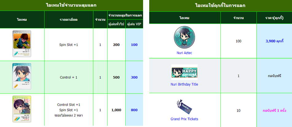 - ต่อที่ 1 เข้าเล่นในโหมด Grand Prix 1 ครั้ง สามารถกดรับไอเทม Memorial Coin (Nuri Edition) ได้ทันที