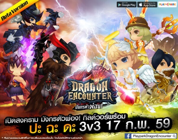เผลอแป๊บเดียว ครบล้านดาวน์โหลดแล้ว!! อัพเดตความมันส์แบบฉุดไม่อยู่กับ 2 ระบบใหม่ที่จะมาสร้างสีสันให้ชาวพ่องกับระบบกิลด์ แบทเทิล (Beta Version)ที่จะมาจุดไฟสงครามระหว่างกิลด์ “ปะ ฉะ ดะ 3V3” ให้สมรภูมิลุกเป็นไฟตั้งแต่วันนี้ไปจนถึงสิ้นเดือน รวมถึงระบบหอคอยนรก 20 ชั้น “Tower ofPurgatory” ที่มีไอเทม 5ดาวล่อตาล่อใจให้ได้ไปเฟ้นหากัน พิเศษสุดๆ!! เตรียมพบระบบใหม่ที่ต้องอดใจรอกันอีกนิดช่วงปลายเดือนกับระบบสัตว์เลี้ยงที่จะเข้ามาทำให้เหล่านักรบมังกรแข็งแกร่งขึ้นสุดๆ ข้อมูลเพิ่มเติม http://dragonencounter.playpark.com หรือ FB Fanpage Dragon Encounter