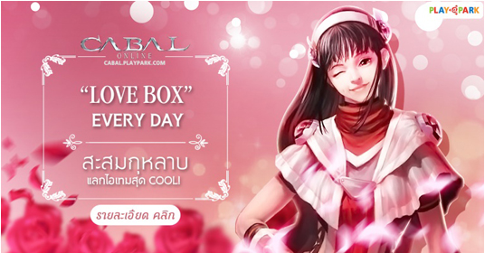 CABAL Online สุดยอดเกม Action MMORPG ระดับตำนาน การันตีสถิติ 10 ล้าน ID ทั่วไทย! อัพเดทใหญ่! “Overlord Master ปลดล็อคสกิลพิเศษ” 27 ก.พ.นี้ พร้อมปล่อยกิจกรรมพิเศษรับ “วาเลนไทน์” “LOVE BOX” Every Day เพียงสะสมดอกกุหลาบสีขาว 14 ดอก และดอกกุหลาบสีแดง 14 ดอก พร้อมเงินอีก 100,000 alz มาแลกรับ LOVE BOX กล่องสุ่มไอเทมเจ๋งๆ ที่จะมีเฉพาะเดือน ก.พ. เท่านั้น!Tales Runner เกมวิ่งแข่งอันดับหนึ่งของไทย อัพเดตใหญ่ครั้งแรก ตัวละครวรรณคดีไทยตัวแรกแห่งสยาม กินรี หญิงงามแห่งโลกวรรณคดี ผู้มีร่างกายท่อนบนเป็นมนุษย์ท่อนล่างเป็นนก มีปีกบินได้ อาศัยอยู่ในป่าหิมพานต์ มาพร้อมกิจกรรมมากมาย นักวิ่งรุ่นเก๋า เข้ามาเล่นใหม่รับไอเทมยกเซ็ท วิ่งไปพร้อมกัน 14 กุมภาพันธ์นี้!