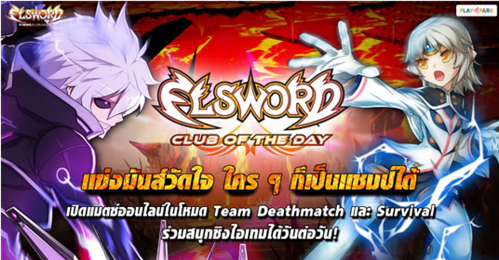 ELSWORD เกมสุดมันส์แนว Action Combo สไตล์ Anime เปิด Club of the Day แข่งมันส์วัดใจ ใคร ๆ ก็เป็นแชมป์ได้ ในแมตช์ออนไลน์โหมด Team Deathmatch และ Survival ให้ชาว ELSWORD ได้เข้ามาร่วมสนุกแข่งขันชิงไอเทม ได้วันต่อวัน ตลอดเดือนกุมภาพันธ์