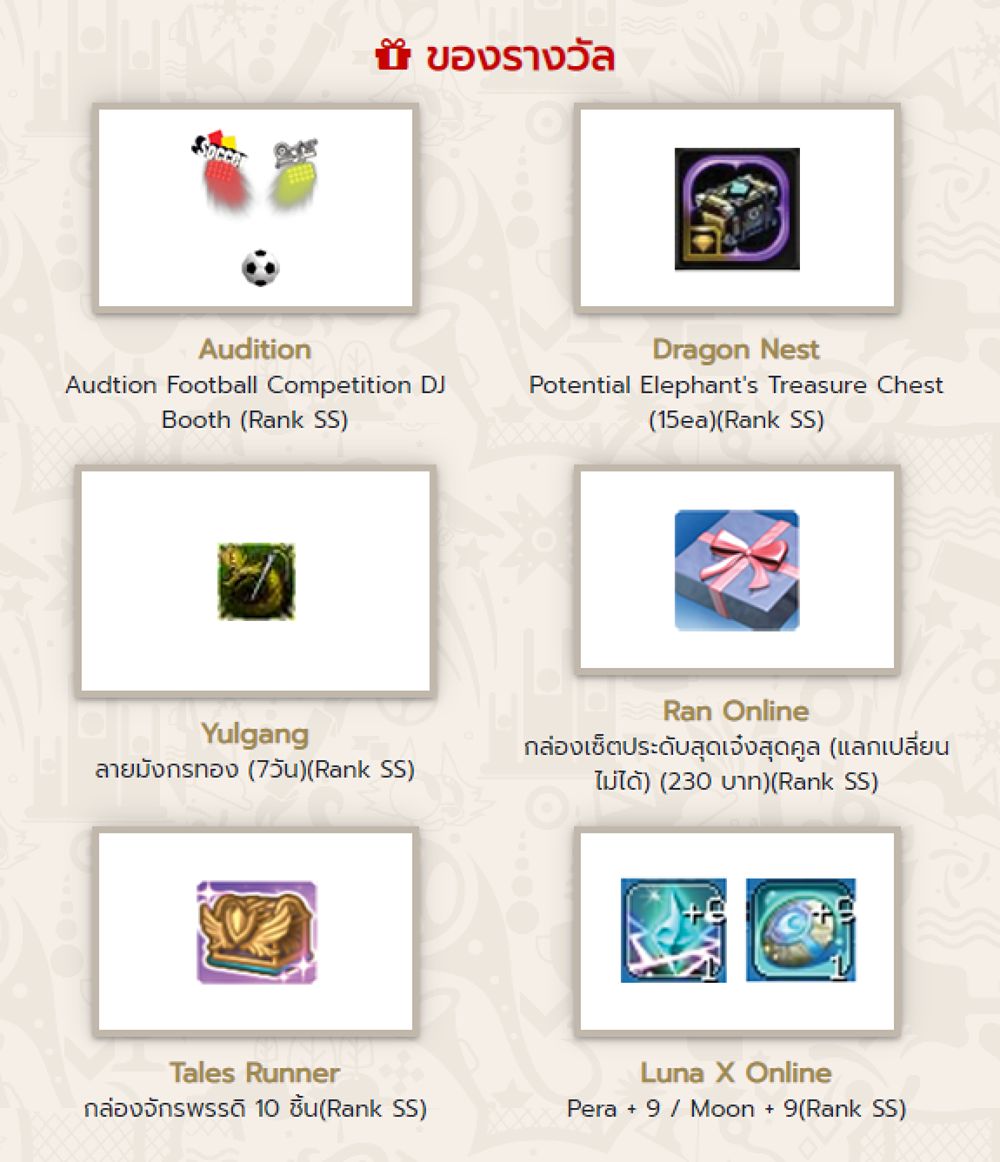 - Login เข้าเกมที่ร่วมกิจกรรม จะได้รับวันละ 2 คะแนน (1 ไอดีสามารถ Login สะสมได้เพียงเกมเดียวเท่านั้น)