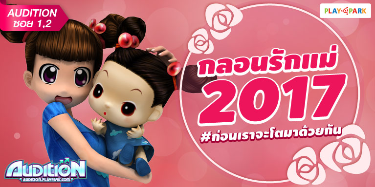 AUDITION เกมแดนซ์ออนไลน์สุดฮิตอันดับ 1 ของเมืองไทย ชวนเพื่อนๆ มาร่วมแต่งกลอนมอบให้แม่ เพื่อแสดงความรักที่มีต่อแม่พิเศษ!! หากโพสต์กลอนพร้อมรูปที่ถ่ายคู่กับแม่โพสท่าตามภาพตัวอย่างในกิจกรรมนี้รับไอเทมหน้าระยะเวลา 1 ปี ไปเลย รายละเอียดเพิ่มเติมร่วมกิจกรรมได้แล้วตั้งแต่วันนี้ – 15สิงหาคม 2560 รายละเอียดเพิ่มเติม (คลิกที่นี่)