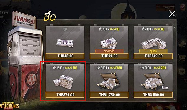 - เติมผ่านในเกมเติม 879 บาท ได้รับ 1800 UC