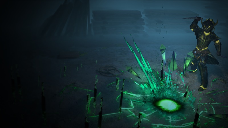 มันจะสร้างความเสียหายในพื้นที่ขนาดปานกลางที่ตำแหน่งเป้าหมาย ศัตรูที่ถูกความเสียหายนี้จะได้รับสถานะ 'เสียขวัญ' ซึ่งจะทำให้พวกมันได้รับความเสียหายเวทย์เพิ่มขึ้น