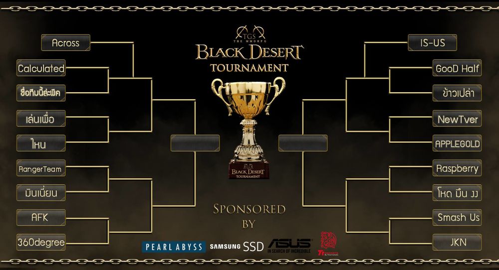 ✔ ข่าวที่ 3: ได้ประกาศรายชื่อผู้เข้าร่วมแข่งขัน Black Desert Tournament แบบ 3 Vs. 3 ในงาน Thailand Game Show Big Festival 2017 ที่จัดขั้นบนชั้น 5 สยามพารากอน ส่วนรายละเอียดทั้งหมดมีดังต่อไปนี้