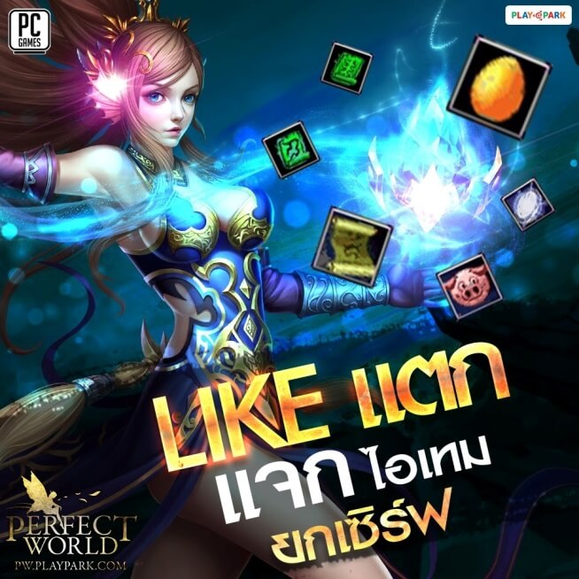 นอกจากไอเทมสุดพิเศษจากการลงทะเบียนล่วงหน้า Pre-Register แล้ว ทุกคนยังสามารถร่วมกิจกรรม LIKE แตก...แจกไอเทมยกเซิร์ฟ! เพียงกด Like Facebook Page PlayPark th Perfect World หากถึงยอดที่กำหนดรับไอเทมไปเลยฟรี ๆ เริ่มแล้วตั้งแต่วันนี้ – 28 พฤษภาคม 2563 ดูรายละเอียดเพิ่มเติมคลิก >> https://bit.ly/2ynLrkz