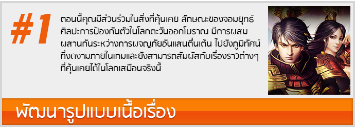 เนื้อหาของเกมจะเป็นการให้ผู้เล่นได้สัมผัสประสบการณ์ขณะเล่นเกม เหมือนการเดินทางข้ามเวลา ที่เต็มไปด้วยศิลปะสมัยจีนโบราณมากมาย นอกจานี้ยังมี NPC ที่เป็นบุคคลที่มีชื่อเสียง มีเรื่องรายเบื้องหลังที่โดดเด่น ผู้เล่นจะได้รับการฝึกฝนในการดำเนินชีวิตในช่วงเวลาของประวัติศาตร์โบราณ ได้ฝึกพลังยุทธ และพลังปราณ ในโลกโบราณที่สวยงามน่าตื่นตาตื่นใจ