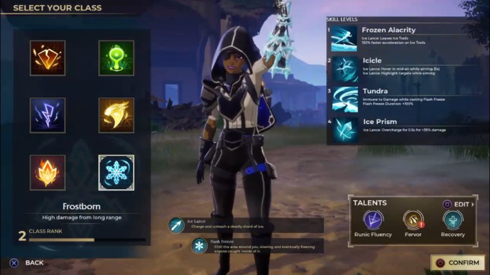 - Frostborn เป็นอาชีพที่เก่งในด้านการโจมตีระยะไกล และยังมีสกิลต่างๆ ที่คอยสนับสนุนตัวละคร หรือปั่นป่วนศัตรูให้เคลื่อนที่ช้าลง เหมาะสำหรับใครที่อยากเล่นเป็นสไนเปอร์ของทีม หรือเพราะเก่งด้านความแม่นยำในการยิงแต่ละนัด
