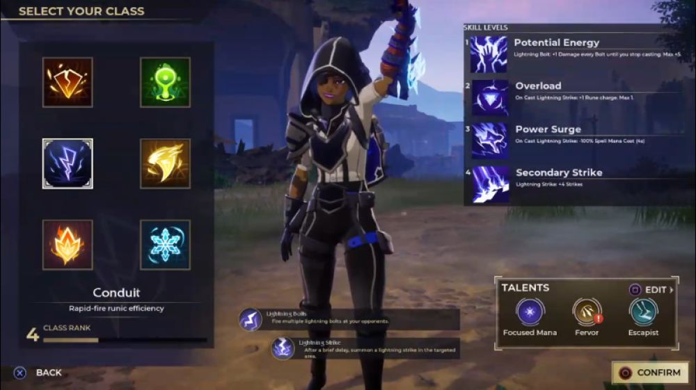 - สกิลติดตัวตอนเริ่ม = Potential Energy - ในการโจมตี Lighting Bolts แบบกดค้างเอาไว้ จะส่งผลให้ +1 พลังโจมตีของกระแสไฟฟ้าที่ยิงต่อเนื่องไปในแต่ละครั้ง สามารถบวกได้สูงสุดเป็น 5 แต้ม และบัฟจะหายทันทีเมื่อมานาหมด หรือเลิกกดค้าง
