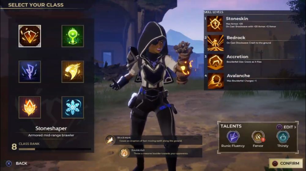 - Stoneshaper เป็นอาชีพที่จะมีความสามารถในการยืนแท็งก์ให้เพื่อนๆ เนื่องจากจะมีสกิลเพิ่มเกราะได้สูงกว่าอาชีพอื่นๆ และยังสามารถฟื้นฟูเกราะส่วนหนึ่งขึ้นมาเองได้ตลอดเวลาด้วย
