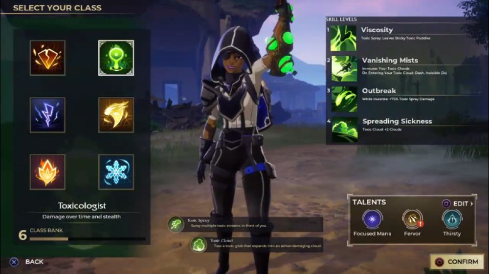 - Toxicologist เป็นอาชีพที่เน้นล่องหน และลอบเร้นใส่ศัตรูในระยะใกล้ แถมยังสามารถควบคุมพื้นที่ให้ศัตรูเสียเปรียบได้ดีพอสมควร เหมาะสำหรับผู้เล่นใจเย็น และตุ๋ยหลังเขาทั้งเกม