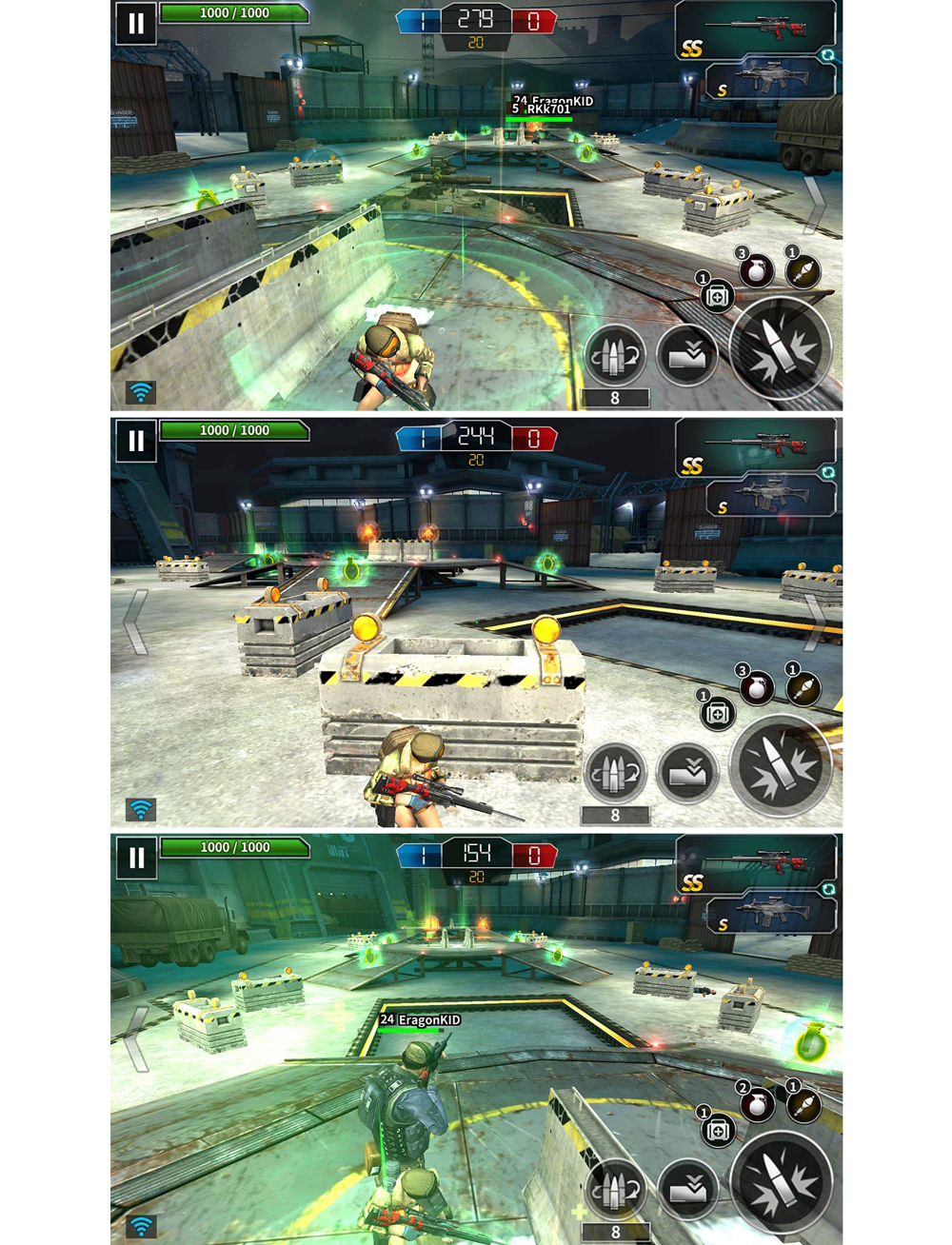 เราสามารถเล่นด่านนี้ได้ในโหมด 1 VS 1 และ 2 VS 2 เป็นด่านที่เล่นง่ายอีกด่าน ด่านนี้จะมีพื้นสูง-ต่ำ ดังนั้นแน่นอนว่าถ้าใครอยู่ที่สูงก็จะได้เปรียบ (จุดหลังเเท๊งน้ำ) เพราะจะเห็นตัวของฝ่ายตรงข้ามได้ชัดเเจ๋วเลย กลับกันกับฝ่ายตรงข้ามที่มองเห็นแค่หัวของฝ่ายที่อยู่สูงกว่า แต่วิธีแก้ก็ง่ายๆ แค่ยิงพังเเท๊งน้ำอีกฝ่ายทิ้งซะ (ยิงแปปเดียวก็พังแล้ว) เท่านี้ก็มองเห็นอีกฝ่ายได้ชัดแจ๋วทั้งตัวเลย หรือไม่ก็ต้องวิ่งไปอยู่ในจุดหลังเเท๊งน้ำเหมือนกัน แต่ถ้าเราวิ่งทีหลังจะเสียเปรียบหน่อยเพราะเขาเล็งเราไว้ก่อนแล้ว ในด่านนี้ระยะห่างระหว่างเราและฝั่งตรงข้ามปานกลาง สามารถใช้ได้ทุกปืนเราสามารถเล่นด่านนี้ได้ในโหมด 2 VS 2 และ 4 VS 4 ด่านนี้เป็นด่านที่กว้างและค่อนข้างเล่นยาก เพราะจำนวนผู้เล่นเยอะ แถมยังมีจุดสูง-ต่ำด้วย ทำให้โดนศัตรูยิงได้จากหลายทิศทาง หาที่หลบยากพอสมควร การเล่นในด่านนี้ไม่ควรอยู่เฉยๆ ต้องคอยสังเกตการเคลื่อนไหวของศัตรูตลอด การหลบที่ดีที่สุดคืออยู่ฝั่งตรงข้ามของศัตรูแบบตรงๆ เพราะศัตรูจะเห็นแค่หัวของเรานิดนึงหรือไม่ก็ไม่เห็นเลย แต่ก็ต้องคอยดูรอบข้างด้วยเพราะศัตรูไม่ได้มีแค่คนเดียว ข้อดีของด่านนี้คือจะมีบัฟเลือดเกิดอยู่แทบจะตลอดที่ริมสุดของเเมพทั้งสองฝั่ง สามารถเล่นด่านนี้ได้เฉพาะโหมด 4 VS 4 เท่านั้นด่านนี้เป็นด่านที่ซับซ้อนมากที่สุด เพราะด่านมันกว้างมาก แถมกำบังก็ไม่ได้วางตรงๆ แบบด่านอื่นๆ ยิ่งเป็นการแข่งแบบ 4 VS 4 ยิ่งลำบากกันเข้าไปใหญ่ เพราะเราโดนยิงได้จากทุกมุม ดังนั้นต้องเคลื่อนไหวอยู่ตลอดเวลา และอย่าไปยืนที่เดียวกันกับคนอื่น เพราะจะโดนระเบิดหรือ RPG สังหารหมู่เอาก็เป็นได้ ควรพกปืนไปมากกว่า 1 ประเภท เพราะด่านนี้มีทั้งจุดยิงระยะไกล และระยะใกล้แบบยืนจ่อกันเลย ตรงริมสุดของด่านจะมีจุดบัฟเพิ่มเลือดโผล่มาบ่อยๆ (ตามภาพล่างสุด) แต่ก็เป็นจุดที่อันตรายมากสุดเหมือนกัน เพราะเป็นจุดเปิดที่จะโดนยิงได้แบบชิวๆ ดังนั้นต้องมองดูทางให้ดีก่อนถ้าจะวิ่งไปจุดนี้