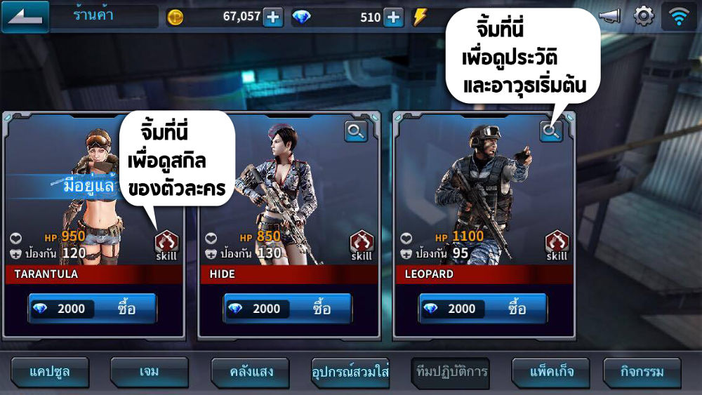 ทีมปฏิบัติการ ก็คือหน้าต่างที่เราใช้จัดการทีมของเรา ซึ่งในทีมเราจะสามารถมีสมาชิกได้ทั้งหมด 3 คน ก็คือตัวที่เราใช้เล่น และผู้ช่วยอีก 2 คน ผู้ช่วยคนแรกเราจะได้มาฟรีจากการเล่นตาม Tutorial ไปเรื่อยๆ ส่วนคนที่สองต้องซื้อเอาเองจากร้านค้าไปที่ร้านค้า > ทีมปฏิบัติการ เพื่อซื้อตัวละครเพิ่ม ในราคา 2,000 เพชร แต่ละตัวก็จะมีสเตตัส, สกิล และปืนเริ่มต้นที่แตกต่างกันไปเมื่อเรานำผู้ช่วยใส่เข้ามาในทีมแล้ว เวลาเราไปเล่นโหมด Campaign, Survival, และ Challenge ผู้ช่วยทั้งสองก็จะโผล่มาช่วยเรายิงในด่าน แต่ก็อย่าไปคาดหวังอะไรกับมันมากเรื่องการยิง อารมณ์เหมือนเป็น Stormtrooper (ไอหุ่นขาวๆที่ยิงอะไรไม่ค่อยจะโดนใน Star War) แต่ก็ไม่ใช่ว่ามันไม่มีประโยชน์นะ ถือว่าช่วยเราได้เยอะเหมือนกัน คือ ถ้าเราเล่นคนเดียว ศัตรูก็จะรุมยิงที่เราคนเดียวใช่ม้า แต่ถ้าเรามากัน 3 คน ศัตรูก็จะกระจายยิงคนอื่นไปด้วย ทำให้เราตายยากขึ้น มีโอกาสชนะมากขึ้นด้วยค่านอกจากนี้ เรายังสามารถปรับแต่งเครื่องแต่งกาย, อาวุธ, และสกิลของตัวละครผู้ช่วยได้เช่นเดียวกับตัวละครหลักเลย ควรหาชุดดีๆ มาใส่เพื่อเพิ่มพลังป้องกัน เพราะจะทำให้ผู้ช่วยสามารถอยู่ได้นานขึ้น เป็นการช่วยต่อชีวิตเราไปด้วยอีกทางเราสามารถสลับเอาตัวละครอื่นมาใช้เป็นตัวหลักได้ ด้วยการเข้าไปที่หน้าทีมปฏิบัติการ > จิ้มที่ตัวละครหลัก > แล้วกด เปลี่ยน จากนั้นก็เลือกตัวที่ต้องการให้เป็นตัวหลักได้เลย สามารถเปลี่ยนได้ตลอดตามที่ต้องการใครที่ยังไม่มีเกม ดาวน์โหลดได้ที่นี่มีคำถามเพิ่มเติม หรือหาเพื่อนเล่น มาเข้ากลุ่มพูดคุย-แลกเปลี่ยนด้วยกันได้ ที่นี่ ♥