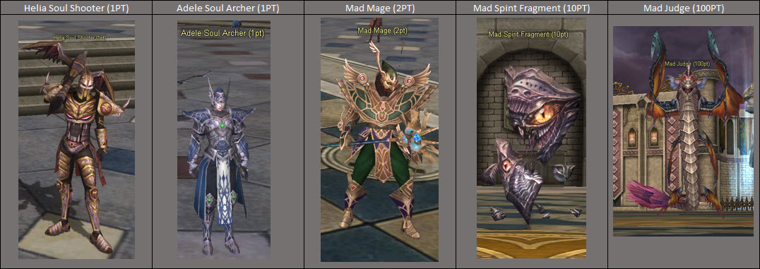 • การฆ่ามอนสเตอร์จะได้รับคะแนนตามระดับของมอนสเตอร์ดังนี้