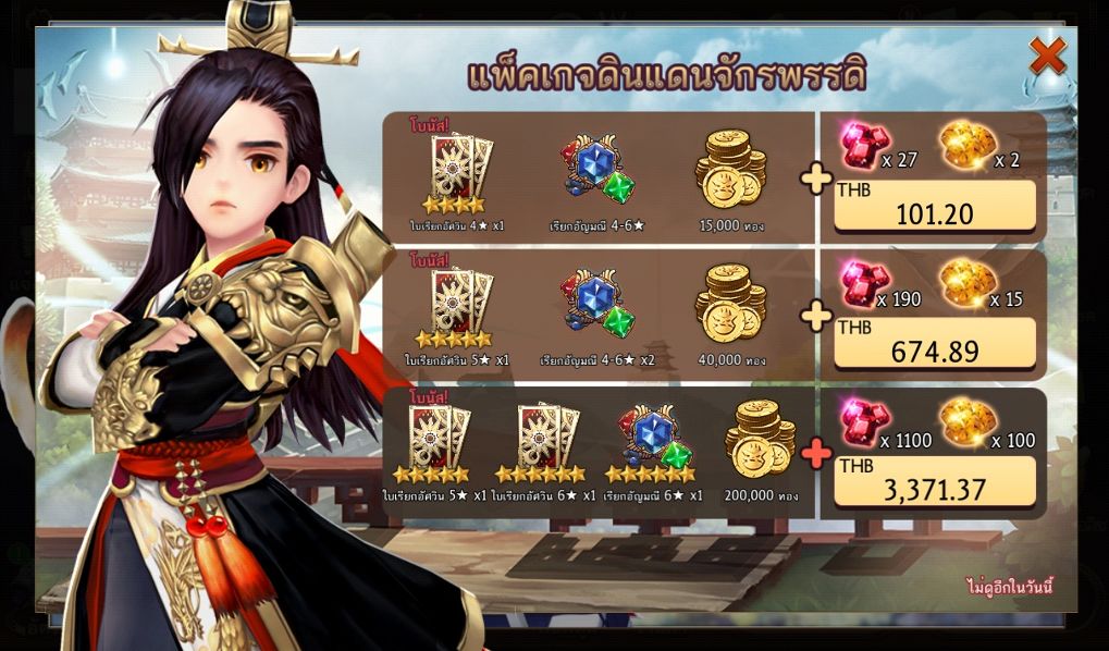 แพ๊คเกจดินแดน จักรพรรดิ มี 3 ขนาด