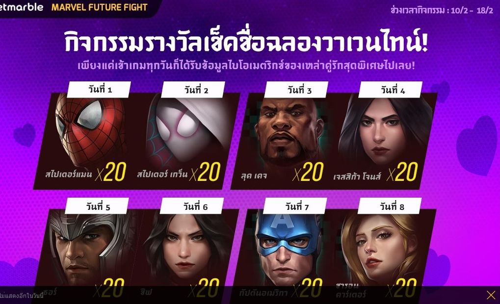 มาต่อกันที่ทาง iOS วันนี้ เป็นทางเกมแนว Hero โปรโมชั่นจากเกม Marvel Future Fight ในวันนี้ก็มีโปรโมชั่นพิเศษสุดคุ้ม จำกัดเวลา จากเกมนี้มาฝากกัน แถมตอนนี้ทางเกม Marvel future fight ก็มีกิจกรรมสำหรับวันวาเลนไทน์มาอัพเดตกัน เป็นกิจกรรมเช็คชื่อ รับรางวัลหลังจากวันของกิจกรรม ทุกวัน ตั้งแต่ 10 ก.พ. – 18 ก.พ. นี้อย่าลืมมาล๊อกอินกันนะ