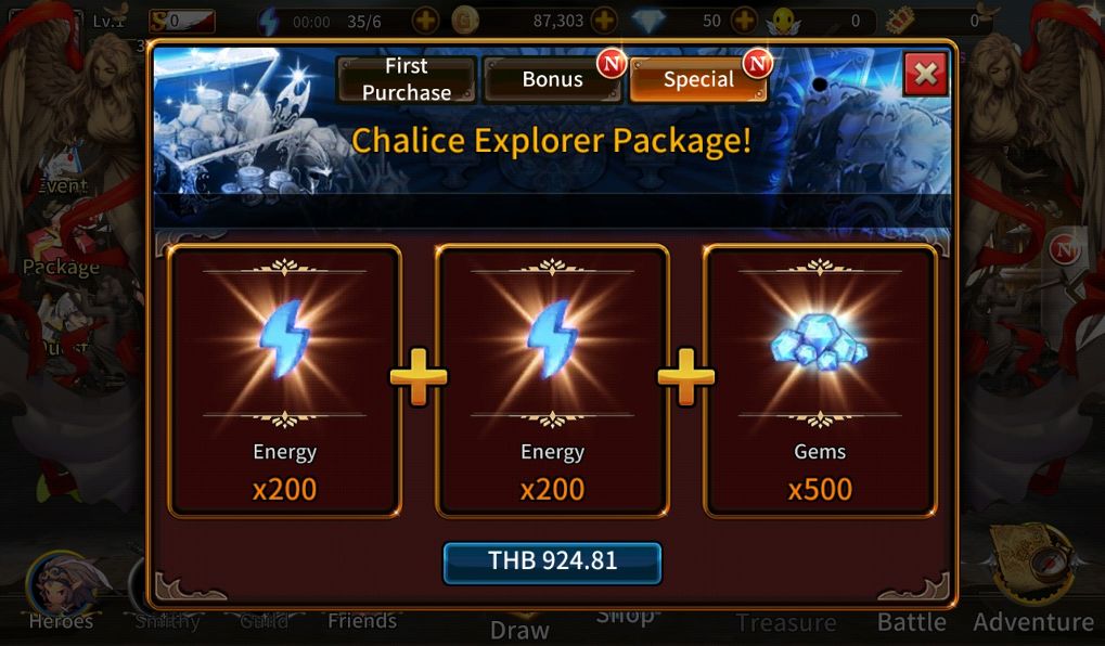 แพ๊กเกจ Chalice Explorer Package ขายในราคา 924.81 บาท แพ๊กนี้จะได้