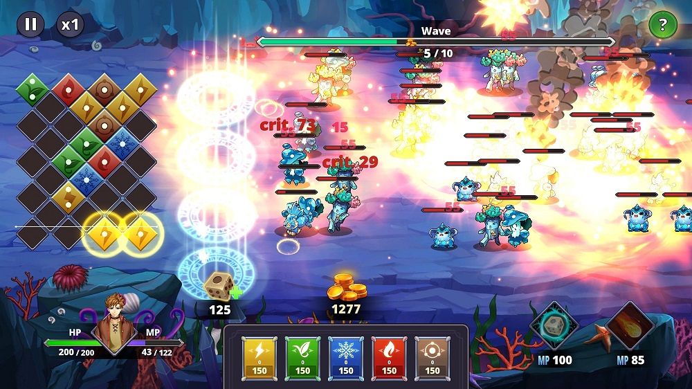 ในสีนั้นๆ เพื่ออัพเกรดเพิ่มพลังจู่โจม รวมถึงใช้เงินอัพเกรดพลังโจมตีของธาตุนั้นๆ ด้วยเช่นกัน (ช่องข้างล่างตรงส่วนกลาง) ระหว่างนั้นก็สะสมค่าเวทมนตร์ (MP) เอาไว้ปลดล่อยท่าไม้ตายยังไงล่ะ อีกทั้งยังสามารถสะสมเงินหลังจากเคลียร์ด่านอื่นๆ เอาไว้ซื้อท่าไม้ตาย / ทักษะสกิลแบบ Active - Passive ให้ช่วยผ่านด่านได้ง่ายขึ้นกว่าเดิมนั่นเอง