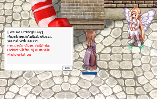 - NPC สำหรับการสร้าง Costume ชื่อ NPC Costume Exchange Fairy เมือง Prontera พิกัด 168, 125
