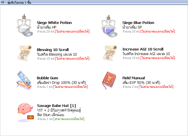 เมื่อทำภารกิจสำเร็จสุ่มรับไอเทม 1 ชิ้นจากรายการดังต่อไปนี้