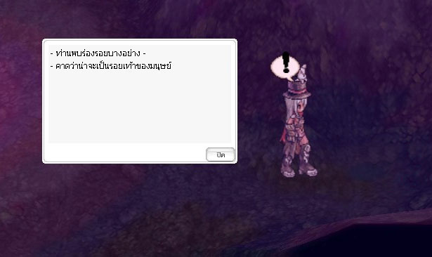 เมื่อมาถึงชั้น 2 ให้ทำการสำรวจร่องรอยแต่ละจุดเหมือนเดิม จนกว่าจะเจอร่องรอยที่ขึ้นเครื่องหมายตกใจ และมีหน้าต่างแสดงว่าพบร่องรอยบางอย่าง คาดว่าเป็นรอยเท้าของมนุษย์ จากนั้นให้ไปหา NPC Cid ที่ Payon Cave F3 พิกัด 128,211 ทำการพูดคุยและกลับมาหา NPC ร่างทรง