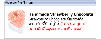 เมื่อทำแต่ละภารกิจที่ได้รับสำเร็จผู้เล่นได้รับ Handmade Strawbery Chocolate 1 ea