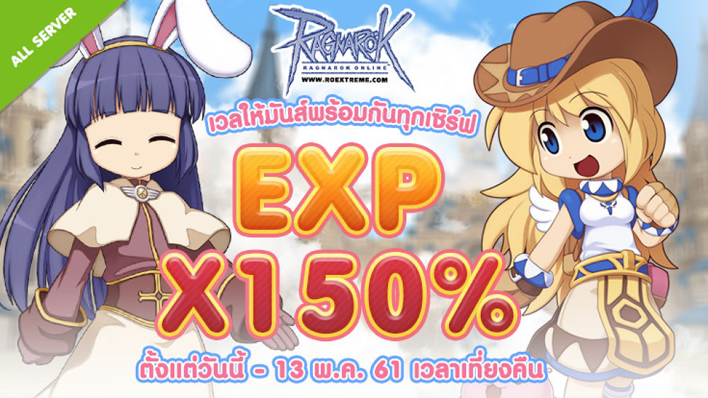 ROEXE ประกาศอัพเดทความสนุกสุดมันส์กับการเปิด ให้เวลมันส์ EXP x150% ทุกเซิร์ฟเวอร์ ( Thor / Loki / Valkyrie / Jellopy) เริ่มคูณตั้งแต่วันนี้ - วันอาทิตย์ที่ 13 พฤษภาคม 2561 เวลาเที่ยงคืน พร้อมทั้งเพิ่มไอเทม Summer Scroll างจำหน่ายทุกเซิร์ฟเวอร์ รายได้จากการจำหน่ายไอเทมชินนี้ จะถูกนำมาสะสมเป็นยอดเงินรางวัลในระบบ Prize Pool สำหรับการแข่งขัน RTC 2018 มาร่วมสนุกกันได้แล้ววันนี้!