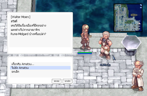 - สามารถไปเมือง Amatsu ได้โดยขึ้นเรือจากเมือง Alberta บริเวณดังรูป คุยกับ NPC และเสียค่าเดินทาง 10,000 Zeny