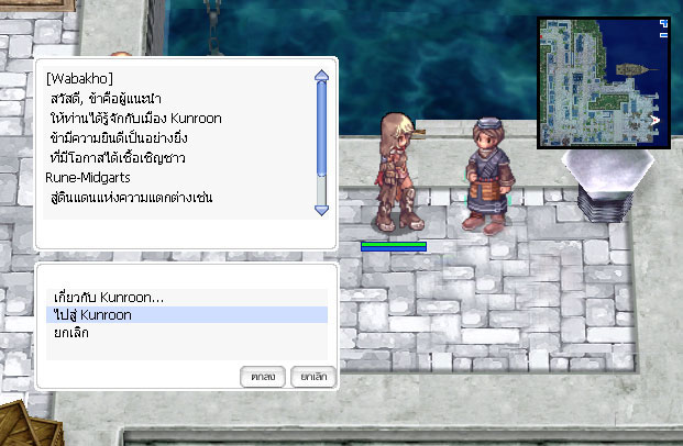 - สามารถไปเมือง Gonryu ได้โดยขึ้นเรือจากเมือง Alberta บริเวณดังรูป คุยกับ NPC และเสียค่าเดินทาง 10,000 Zeny