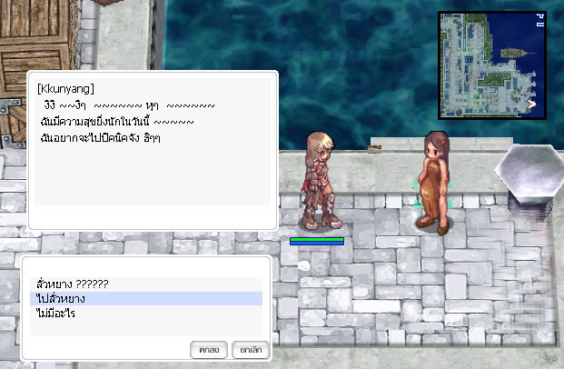 - เมื่อทำเควสสำเร็จให้มาคุยกับ NPC กะลาสี ที่บริเวณดังรูป จากนั้นเสียค่าเดินทาง 10,000 zeny เพื่อไปยัง Turtle Island