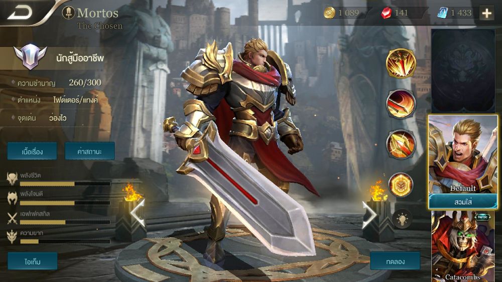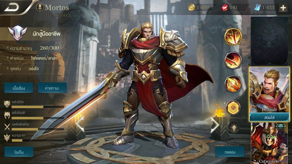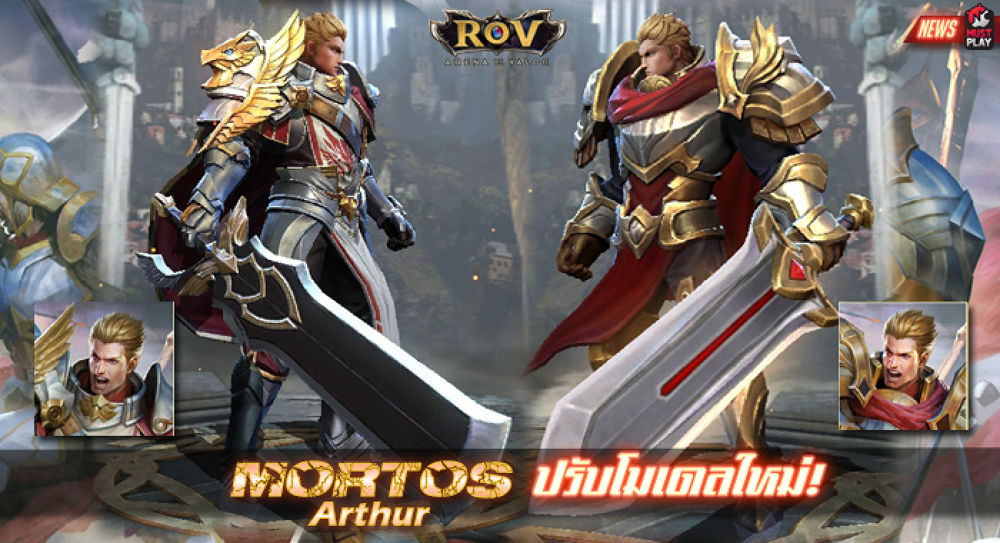ตอนนี้ Mortos ถูกปรับรีโมเดลให้ดูดีขึ้น ทั้งสีเครื่องแต่งกายทั้งหมด ให้ดูเป็น King มากขึ้น ด้วยดีไซน์เกราะติดแขนขวาใหม่ให้มีความเวอร์วังกว่าเดิม และชุดที่ดูเหมาะสมกับการเป็นนักรบมากขึ้น พร้อมกับดาบใหม่ ที่ดูไม่ใช่แค่ดาบใหญ่ปลายมนทั่วๆไปแบบเดิม และที่สำคัญโมเดลใหม่นี้ทำให้เขาดูตัวเพรียวขึ้น หล่อเหลาทำเอาสาวๆ ในเกมกรี๊ดกันเป็นแถบๆเลยล่ะ! ดูเปรียบเทียบตามๆกันไปเลย! นอกจากนั้นยังมีการปรับในส่วนของ In-Game ด้วย ในเรื่องของการแสดงผลสกิลแบบใหม่ ดังนี้- สกิล 1 : ปรับแสงบนดาบให้ดูสว่างขึ้น