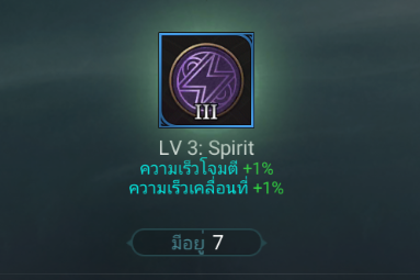 - เพิ่มความเร็วเคลื่อนที่ 40 และ ลดความเสียหายที่ได้รับลง 40 / 60 / 80 แต้ม โดยบัฟทั้งหมดจะอยู่ได้นานถึง 8 วินาที