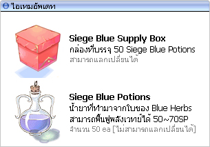 - Siege Blue Supply Box - 100 KP (ปุ่มคีย์ลัด Kafra Shop)