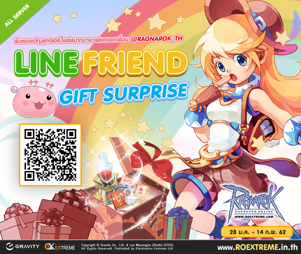 เตรียมตัวรับของขวัญสุดเซอร์ไพรส์จาก Ragnarok Extreme กันได้เลย! โดยทีมงานจะทำการแจก Master Code ให้กับเพื่อนๆทุกคนที่ทำการ Add LINE ID ของเรา @ragnarok_th (ต้องมีเครื่องหมาย@นำหน้า) จากนั้นก็รอรับรอลุ้นของรางวัลกันได้เลย และยังมีของรางวัลพิเศษแรร์คอสตูม สำหรับเพื่อนๆ ที่ทำการเติม Master Code ของเราครบทุก Code ในช่วงระยะเวลากิจกรรม ก็มีสิทธิ์ลุ้นรับกันไปเลย เริ่มกิจกรรม 26 มกราคม - 14 กุมภาพันธ์ 2562