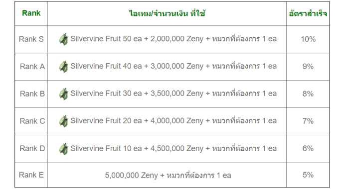 ** ไอเทม Silvervine Fruit ที่ซื้อมาจาก Kafra Shopจะต้องทำการรวมให้เป็นก้อนเดียวก่อนจึงจะสามารถนำมาใช้งานได้ **