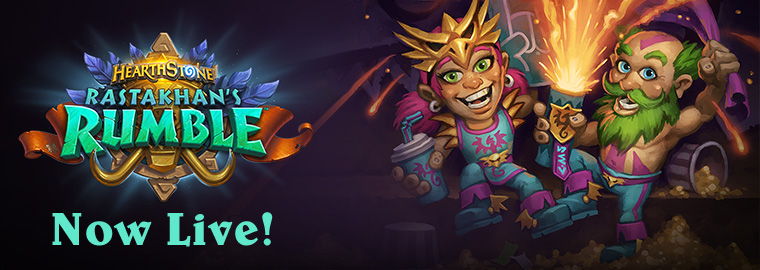 ผู้เล่น Hearthstone จากทั่วอาเซรอธได้เดินทางมาสู่กูรูบาชิอารีน่าพร้อมกับฝูงชนคึกครื้นและนักสู้โทรลล์เพื่อเป็นสักขีพยานการเริ่มต้น Rastakhan’s Rumble ส่วนเสริมใหม่ล่าสุดสำหรับเกมการ์ดดิจิทัลยอดฮิตของ Blizzard Entertainment ที่เพิ่งมียอดผู้เล่นทะลุ 100 ล้านคน*! Rastakhan’s Rumble จับผู้เล่นโยนเข้าศึกการต่อสู้เพื่อศักดิ์ศรีที่ดุเดือดด้วยการ์ดใหม่สุดโหด 135 ใบ และกลไกเกมใหม่ที่อัดแน่นไปด้วยพลังโมโจ