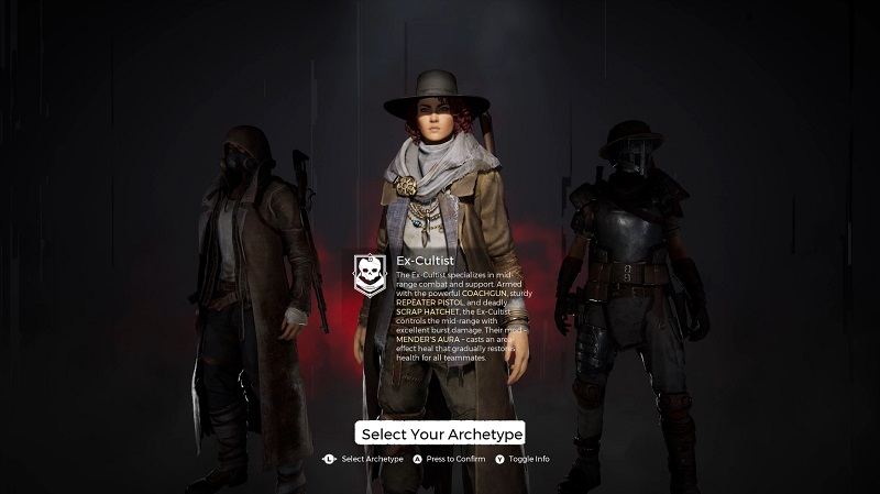 Scrapper (เน้นโจมตีระยะใกล้), Ex-Cultist (เน้นโจมตีระยะกลาง) และ Hunter (เน้นโจมตีระยะไกล)