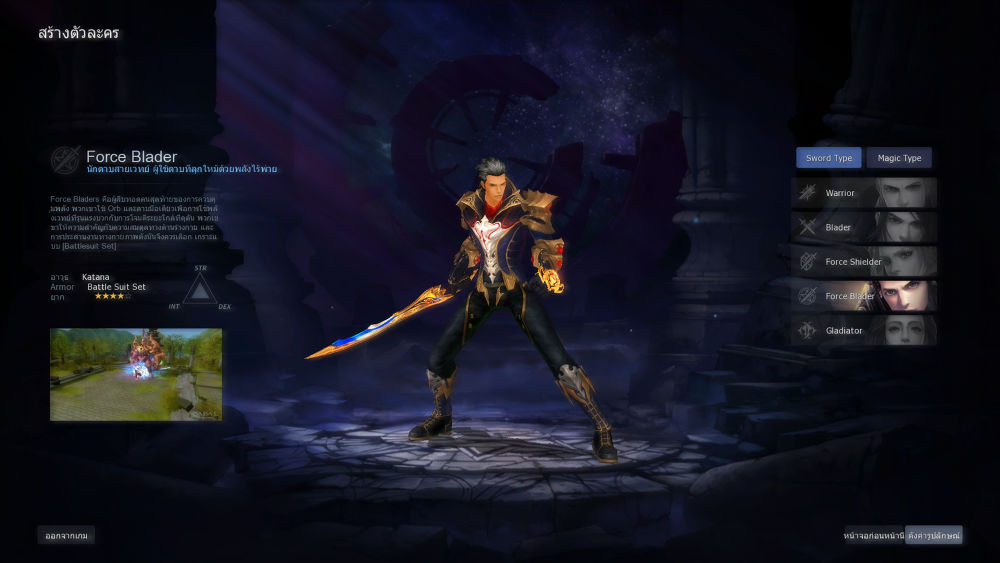 • Force Blader สายอาชีพลูกผสมระหว่างดาบและเวทย์ ทำให้มีจุดเด่นจุดด้อยอยู่ตรงกลาง ค่อนข้างสมดุล สกิลก็จะ
