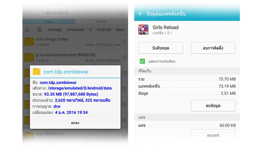 ด้านขนาดตัวเกม การติดตั้งเกม Girls Reload นั้นควรมีพื้นที่ก่อนการติดตั้ง-โหลดแพทประมาณ 150MB โดยหลังจากติดตั้งเสร็จแล้ว จะกินพื้นที่เบ็ดเสร็จ ราวๆ 100MB (+-) ซึ่งหากเพื่อนๆ ต้องการตรวจเช็คน้ำหนักปัจจุบัน บนมือถือ Android ให้กดเข้าไปที่ "หน่วยความจำหลัก>Android>Data>com.tdp.zombiewar"